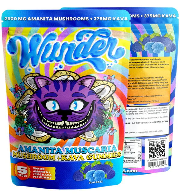 Wunder Amanita Mascaria Mushroom + Kava Gummies Blue Razz